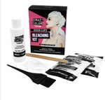 Contenu : gants, plateau, spatule, crème de peroxyde (30 vol - 9 %), poudre de blanchiment et guide d'instruction multilingue complet, étape par étape.
